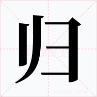 “归” 字共有 5 画,拼音:guī,kuì,注音:ㄍㄨㄟ,部首:彐,笔画数:5 画,字体结构:左右结构,五行:木,五笔:JVG,Unicode编码:U+5F52,郑码:KDXB,仓颉:LLSM,“归”字笔顺为:丨ノフ一一