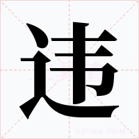 又如:违错(违反,违背);违干(违犯;冒犯);违别(违抗);违逆(违背;不合情理);违越(违背;越轨);违心之论(与内心相违背的话);违天(违背天意);违科(不符合法令);违俗(违背世俗的习惯或观念);违常(反常,违反常理)