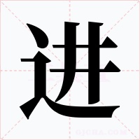 又如:迈进(大踏步地前进);奋进(奋勇前进);进不来出不去(比喻进退两难或处境尴尬);进旅退旅(进退一致,整齐合一);进退中绳(举动合乎规矩)