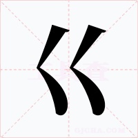 “巜” 字共有 3 画,拼音:kuài,注音:ㄎㄨㄞˋ,部首:巛,笔画数:3 画,字体结构:左右结构,五行:木,五笔:BNN,Unicode编码:U+5DDC,郑码:ZDAA,仓颉:VV,“巜”字笔顺为:フフ