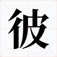 “彼” 字共有 8 画,拼音:bǐ,注音:ㄅㄧˇ,部首:彳,笔画数:8 画,字体结构:左右结构,五行:水,五笔:THCY,Unicode编码:U+5F7C,郑码:OIXI,仓颉:HODHE,“彼”字笔顺为:ノノ丨フノ丨フ丶
