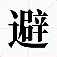 “避” 字共有 16 画,拼音:bì,注音:ㄅㄧˋ,部首:辶,笔画数:16 画,字体结构:半包围结构,五行:水,五笔:NKUP,Unicode编码:U+907F,郑码:WXJS,仓颉:YSRJ,“避”字笔顺为:フ一ノ丨フ一丶一丶ノ一一丨丶フ丶