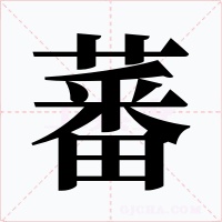 “蕃” 字共有 15 画,拼音:bō,fán,fān,注音:ㄈㄢˊ,部首:艹,笔画数:15 画,字体结构:上下结构,五行:木,五笔:ATOL,Unicode编码:U+8543,郑码:EPKI,仓颉:THDW,“蕃”字笔顺为:一丨丨ノ丶ノ一丨ノ丶丨フ一丨一