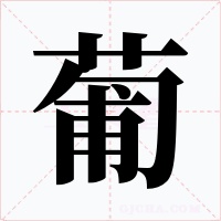 “葡” 字共有 12 画,拼音:pú,注音:ㄆㄨˊ,部首:艹,笔画数:12 画,字体结构:上下结构,五行:木,五笔:AQGY,Unicode编码:U+8461,郑码:ERFB,仓颉:TPIB,“葡”字笔顺为:一丨丨ノフ一丨フ一一丨丶