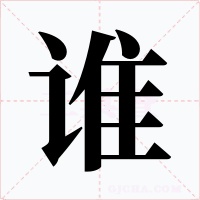 (形声。从言,隹(zhuī)声。金文字形,象鸟在叫。①基本义:什么人。《左传·隐公元年》:“其谁曰不然?”②什么。《说文》:“何也。”)