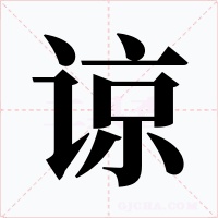 “谅” 字共有 10 画,拼音:liàng,注音:ㄌㄧㄤˋ,部首:讠,笔画数:10 画,字体结构:左右结构,五行:火,五笔:YYIY,Unicode编码:U+8C05,郑码:SSJK,仓颉:IVYRF,“谅”字笔顺为:丶フ丶一丨フ一丨ノ丶