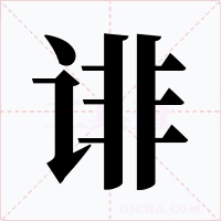 又如:诽诽(众说纷纷的样子);诽章(谤书,谤毁他人的奏章);诽讥(毁谤讥讽);诽誉(毁谤和赞誉);诽诋(诽谤诋毁)