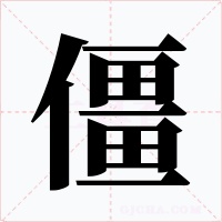又如:僵死(倒地死去;倒地死去的人);僵伏(倒地而死〖的人〗);僵偃(仰卧不动);僵踣(倒地〖的尸体〗);僵毙(倒下死亡)
