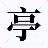 (象形。战国文字字形,其中“T”象矗立的亭柱。小篆以为从高省,丁声。本义:古代设在路旁的公房,供旅客停宿)
