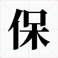 (会意。甲骨文字形,象用手抱孩子形。金文写作从“人”从“子”。后来为了结构的对称,小篆变成“保”,使人不能因形见义了。本义:背子于背)