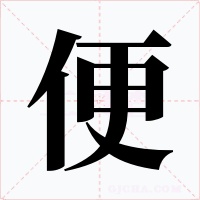 “便” 字共有 9 画,拼音:biàn,pián,注音:ㄅㄧㄢˋ|ㄆㄧㄢˊ,部首:亻,笔画数:9 画,字体结构:左右结构,五行:水,五笔:WGJQ,Unicode编码:U+4FBF,郑码:NAKO,仓颉:OMLK,“便”字笔顺为:ノ丨一丨フ一一ノ丶