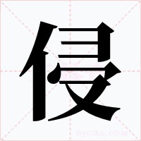 (敌人)进入境内,(外来的或有害的事物)进入内部:侵害。侵吞。侵略。侵染。侵蚀。