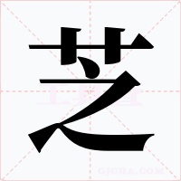又如:芝草(即灵芝);芝圃(相传为仙人栽植灵芝的园圃);芝残(灵芝凋谢。比喻贤德的人凋零);芝艾(芝草和艾草。比喻贵贱、贤愚);芝田(传说中仙人种灵芝的地方)