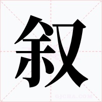 “叙” 字共有 9 画,拼音:xù,注音:ㄒㄩˋ,部首:又,笔画数:9 画,字体结构:左右结构,五行:金,五笔:WTCY,Unicode编码:U+53D9,郑码:ODMX,仓颉:ODE,“叙”字笔顺为:ノ丶一一丨ノ丶フ丶