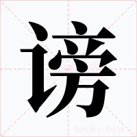(形声兼会意。从言,旁声。本义:在背后公开地议论或批评某人的短处)