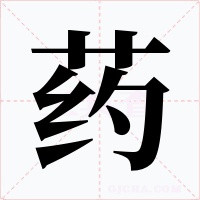 (形声。从艸,乐声。本义:治病的物品。药物;药材。一般是植物,故从艸)