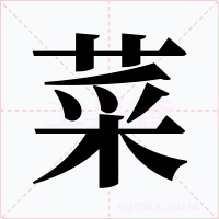 (形声。采声。上古时期,菜只指蔬菜,不包括肉类、蛋类,到了中古以后,菜就包括内类、蛋类及其熟食在内了。本义:蔬菜)