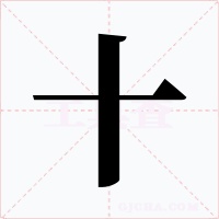 (指事。甲骨文象用一根树枝代表十,金文象是结绳记数,用一个结表示十。后来一点变成了一横。本义:九加一的和)