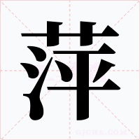 “萍” 字共有 11 画,拼音:píng,注音:ㄆㄧㄥˊ,部首:艹,笔画数:11 画,字体结构:左右结构,五行:水,五笔:AIGH,Unicode编码:U+840D,郑码:EVAU,仓颉:TEMJ,“萍”字笔顺为:一丨丨丶丶一一丶ノ一丨