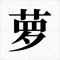 “萝” 字共有 11 画,拼音:luó,注音:ㄌㄨㄛˊ,部首:艹,笔画数:11 画,字体结构:上下结构,五行:木,五笔:ALQU,Unicode编码:U+841D,郑码:ELRS,仓颉:TWLN,“萝”字笔顺为:一丨丨丨フ丨丨一ノフ丶