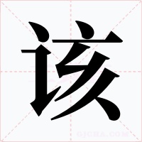 (形声。从言,亥声。本义:军中互相戒守的约言。《说文》:“该,军中约也。”引申为“完备”。引申义:完备,包括一切。通“赅”)