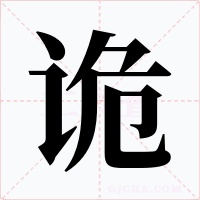 欺诈,奸滑:诡称。诡道。诡诈。诡辩(a.无理强辩;b.逻辑学上指似是而非的论证,如“诡诡论”)。