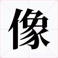 像,似也。——《说文》。段注:“然韩非之前只有象字,无像字。韩非以后小篆即作像。许断不以象释似,复以象释像矣。系辞曰,爻也者,效此者也。象也者,像此者也。又曰,象也者,像也。…盖象为古文,圣人以像释之。虽他本像亦作象。然郑康成、王辅本非不可信也。凡形像、图像、想像字皆当从人,而学者多作象,象行而像废矣。”