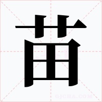 又如:苗末(后代子孙);苗胄(后代的子孙);苗胤(子孙相承续。亦指后代子孙);苗嗣(后嗣,后代);苗绪(后代子孙)