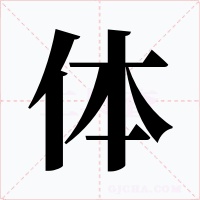 (体,会意。从人,从本。古代“体、軆”是两个字,“体”是“劣”,又指粗笨。身体本字是“軆”,形声。从骨,豊(lǐ)声。今简化为“体”。本义:身体)