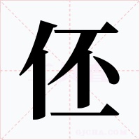 (形声。从人,丕声。本义:有力。一说众多盛大)