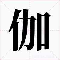 “伽” 字共有 7 画,拼音:gā,jiā,qié,注音:ㄑㄧㄝˊ|ㄐㄧㄚ|ㄍㄚ,部首:亻,笔画数:7 画,字体结构:左右结构,五行:木,五笔:WLKG,Unicode编码:U+4F3D,郑码:NYJ,仓颉:OKSR,“伽”字笔顺为:ノ丨フノ丨フ一