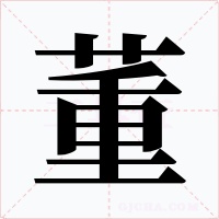 “董” 字共有 12 画,拼音:dǒng,注音:ㄉㄨㄥˇ,部首:艹,笔画数:12 画,字体结构:上下结构,五行:火,五笔:ATGF,Unicode编码:U+8463,郑码:EMKB,仓颉:THJG,“董”字笔顺为:一丨丨ノ一丨フ一一丨一一