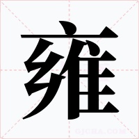 “雍” 字共有 13 画,拼音:yōng,注音:ㄩㄥ,部首:隹,笔画数:13 画,字体结构:上下结构,五行:土,五笔:YXTY,Unicode编码:U+96CD,郑码:SZZN,仓颉:YVHG,“雍”字笔顺为:丶一フフノノ丨丶一一一丨一