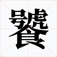 〔饕餮〕a.传说中的一种凶恶贪食的野兽,古代铜器上面常用它的头部形状做装饰;b.喻凶恶贪婪的人;c.喻贪吃的人。