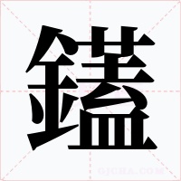 “鑉” 字共有 21 画,拼音:hé,注音:ㄏㄜˊ,部首:釒,笔画数:21 画,字体结构:左右结构,五行:金,五笔:QAFL,Unicode编码:U+9449,郑码:PEZL,仓颉:CTGT,“鑉”字笔顺为:ノ丶一一丨丶ノ一一丨丨一丨一フ丶丨フ丨丨一