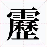 “靂” 字共有 24 画,拼音:lì,注音:ㄌㄧˋ,部首:雨,笔画数:24 画,字体结构:上下结构,五行:水,五笔:FDTH,Unicode编码:U+9742,郑码:FVMI,仓颉:MBMHM,“靂”字笔顺为:一丶フ丨丶丶丶丶一ノノ一丨ノ丶ノ一丨ノ丶丨一丨一