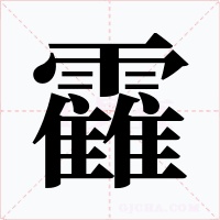 “靃” 字共有 24 画,拼音:huò,注音:ㄏㄨㄛˋ,部首:雨,笔画数:24 画,字体结构:上下结构,五行:水,五笔:FWYY,Unicode编码:U+9743,郑码:FVNN,仓颉:MBOGG,“靃”字笔顺为:一丶フ丨丶丶丶丶ノ丨丶一一一丨一ノ丨丶一一一丨一