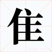 (象形。甲骨文字形,象鸟形。《说文》:“鸟之短尾之总名也。”与“鸟”同源。“隹”是汉字的一个部首,从“隹”的字与禽类有关。本义:短尾鸟的总名)