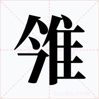 “雂” 字共有 12 画,拼音:qín,注音:ㄑㄧㄣˊ,部首:隹,笔画数:12 画,字体结构:左右结构,五行:火,五笔:WYNY,Unicode编码:U+96C2,郑码:ODXN,仓颉:ONOG,“雂”字笔顺为:ノ丶丶フノ丨丶一一一丨一