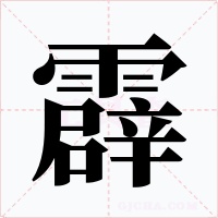 “霹” 字共有 21 画,拼音:pī,注音:ㄆㄧ,部首:雨,笔画数:21 画,字体结构:上下结构,五行:水,五笔:FNKU,Unicode编码:U+9739,郑码:FVJS,仓颉:MBSRJ,“霹”字笔顺为:一丶フ丨丶丶丶丶フ一ノ丨フ一丶一丶ノ一一丨