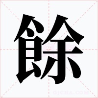 “餘” 字共有 15 画,拼音:yú,注音:ㄩˊ,部首:飠,笔画数:15 画,字体结构:左右结构,五行:金,五笔:WYVT,Unicode编码:U+9918,郑码:OXOM,仓颉:OIOMD,“餘”字笔顺为:ノ丶丶フ一一フ丶ノ丶一一丨ノ丶