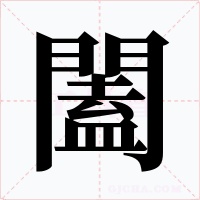 “闔” 字共有 18 画,拼音:hé,注音:ㄏㄜˊ,部首:門,笔画数:18 画,字体结构:上包围结构,五行:木,五笔:UFCL,Unicode编码:U+95D4,郑码:XDZL,仓颉:ANGIT,“闔”字笔顺为:丨フ一一丨フ一一一丨一フ丶丨フ丨丨一