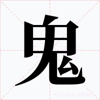 (象形。甲骨文字形,下面是个“人”字,上面象一个可怕的脑袋(非“田”字),是人们想象中的似人非人的怪物。“鬼”是汉字部首之一,从“鬼”的字大多与迷信、鬼神有关。本义:迷信的人认为人死后有“灵魂”,称之为“鬼”)