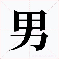 (会意。从田,从力。表示用力(一说指耒)在田间耕作。本义:男人,与“女”相对)