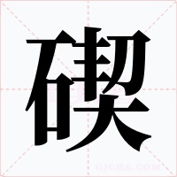 “碶” 字共有 14 画,拼音:qì,注音:ㄑㄧˋ,部首:石,笔画数:14 画,字体结构:左右结构,五行:火,五笔:DDHD,Unicode编码:U+78B6,郑码:GCYG,仓颉:MRQHK,“碶”字笔顺为:一ノ丨フ一一一一丨フノ一ノ丶