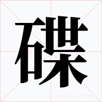 (形声。从石,枼(yè)声。本义:盛食品的小盘)同本义〖smallplate〗。如:碗碟;碟酌(酒菜;酒席);碟大碗小,磕着碰着了(比喻人多事杂,容易发生摩擦)。又:用作量词。如:一碟瓜子