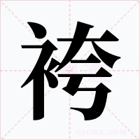 又如:袴褶(骑兵的战服);袴靴(指军服);袴口(裤口。裤管的边缘;裤管);袴子(裤子。穿在腰部以下的衣服,有裤腰、裤裆和两条裤腿)