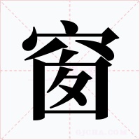 (象形。从穴,囱(cōng)声。“窗”本作“囱”(cōng),小篆字,象天窗形,即在屋上留个洞,可以透光,也可以出烟(后来灶突也叫“囱”)。后加“穴”字头构成形声字。本义:天窗)