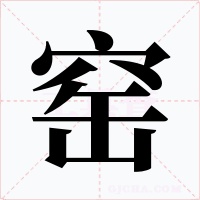 (会意。从穴,从缶(fǒu)。穴,土室;缶,瓦器。表示烧制瓦器的地方。本义:烧砖瓦陶瓷器的灶)