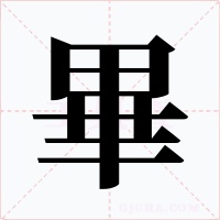 “畢” 字共有 10 画,拼音:bì,注音:ㄅㄧˋ,部首:田,笔画数:10 画,字体结构:独体字,五行:水,五笔:JAFK,Unicode编码:U+7562,郑码:KEBI,仓颉:WTJ,“畢”字笔顺为:丨フ一一一丨丨一一丨